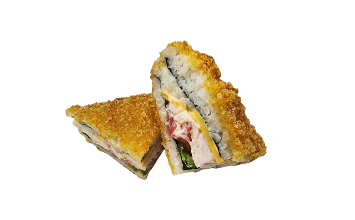 Сэндвич в темпуре с рисом, нори, курицей, листом салата, помидором, плавленым сыром и спайси соусом, 4 шт