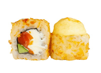 Темпурный ролл с курицей, огурцом и шапочкой из сливочной лавы, 8 шт
