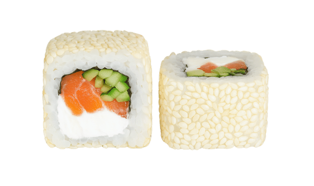 Ролл с лососем, сыром, огурцом в кунжуте, 8 шт