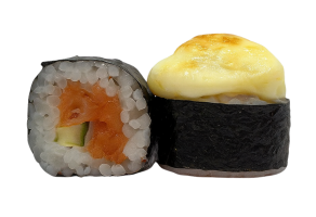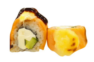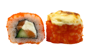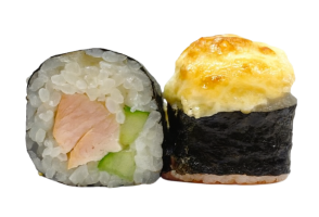 Запеченный ролл с лососем и огурцом, под сырной шапочкой, 8 шт