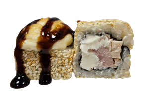 Запеченный ролл с тунцом, сливочным сыром под сырной шапкой, 8 шт