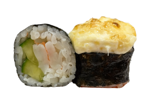 Мини запеченный ролл с тигровой креветкой под сырной шапочкой, 8 шт